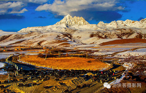 莽莽天地间的蔚蓝映衬一方净土,神山央迈勇在望,雪后被覆压的经幡静默着,见证这一刻的庄严神圣。